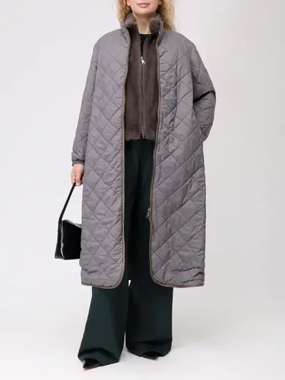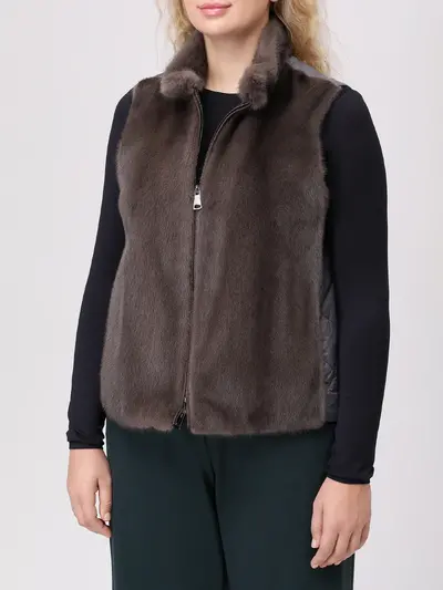 -Серое стеганое пальто и жилет из меха норки от MANZONI 24.