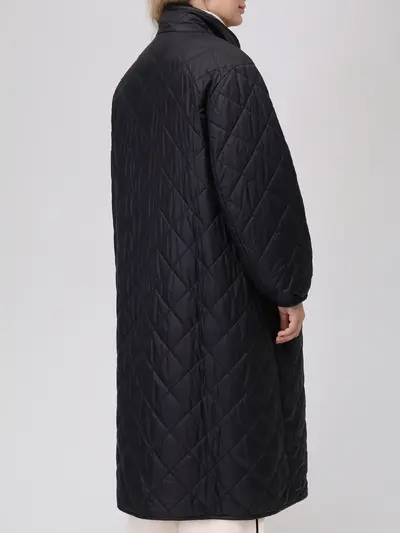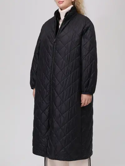 -Пальто прямого кроя с длинными рукавами, воротником-стойкой и застежкой на молнию с двумя пуллерами.