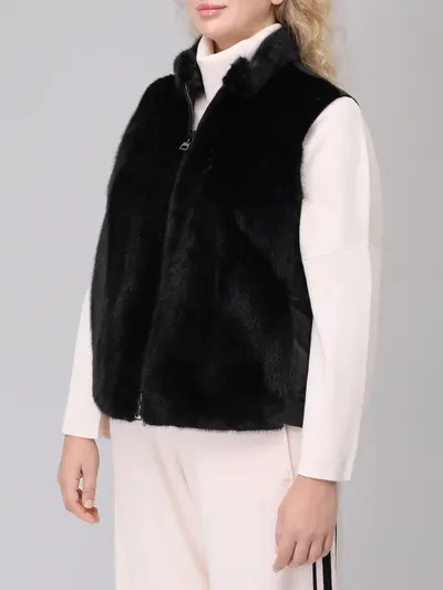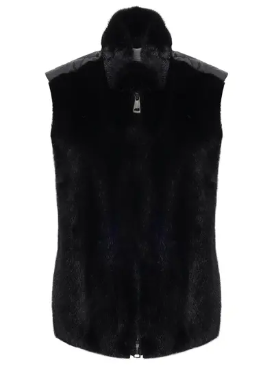 -Черное стеганое пальто и жилет из меха норки от MANZONI 24.
