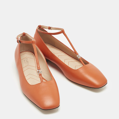Gucci Orange Leather Interlocking G Logo T Strap Ballet Flats Size 40 1225474 (оранжевый, lpn31028602)