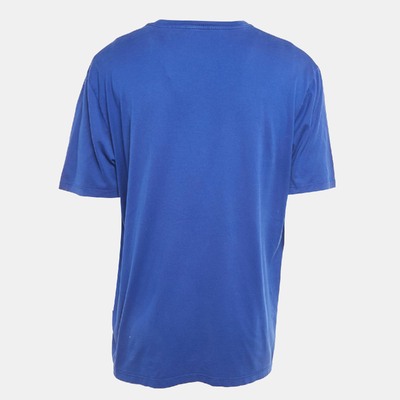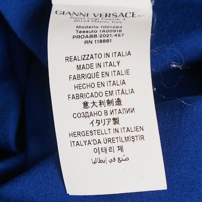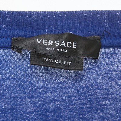 Crafted from premium cotton, this Versace T shirt showcases bold blue embroidered logo detailing on a classic crew neck. Soft and durable, it offers both comfort and designer appeal. Ideal for elevating casual outfits with a luxury touch.