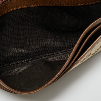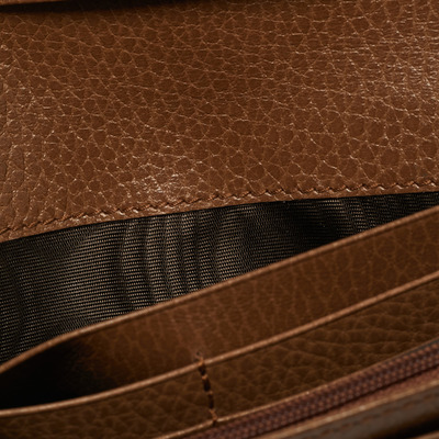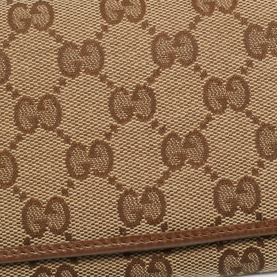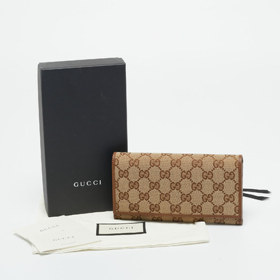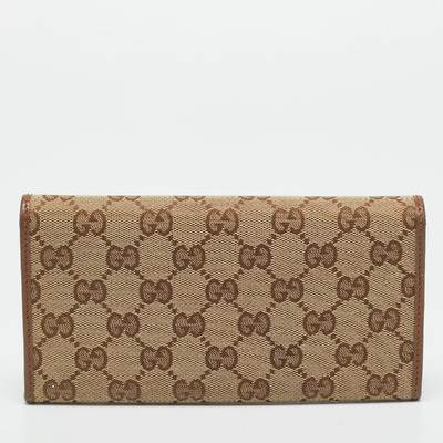 Gucci’s GG canvas defines this continental wallet, paired with leather trim for structure. The flap front opens to multiple compartments, making it a functional classic that carries the house’s heritage monogram with ease.