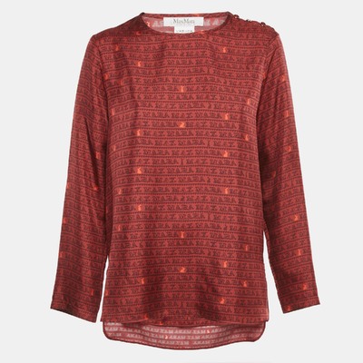 Max Mara Red Overall Print Silk Blouse M 1225064 (красный, lpn31028665)