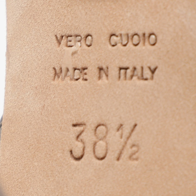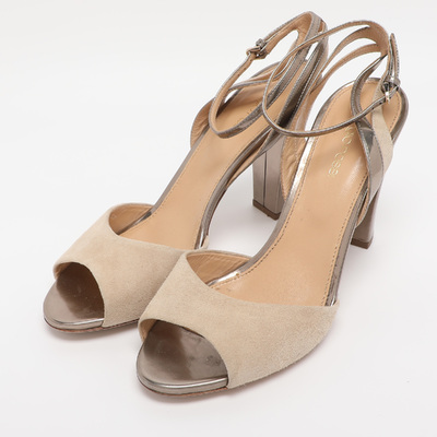 These Sergio Rossi sandals combine beige leather and suede for a soft tonal effect. The ankle strap adds structure while maintaining a refined and feminine silhouette. A versatile neutral pair for everyday elegance.