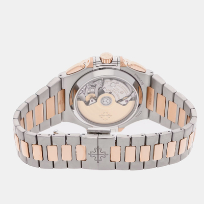 Iconic and effortlessly sporty, the Nautilus Chronograph 5980/1AR 001 fuses Patek Philippe’s legendary craftsmanship with modern luxury. Its stainless steel and rose gold case, combined with a robust automatic movement, offers precision and reliability, while the distinctive Nautilus design ensures instant recognition. Sleek, versatile, and undeniably sophisticated, this timepiece is a testament to the maison’s enduring vision of elegance in motion.