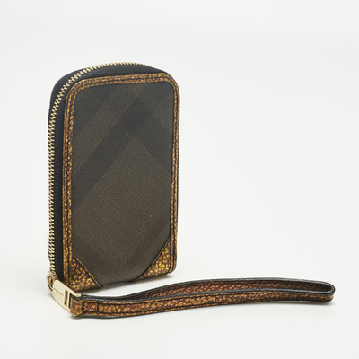Burberry Gold/Brown Smoke Check Coated Canvas Zip Wristlet Pouch 1224974 (lpn31028690)