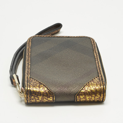 Burberry Gold/Brown Smoke Check Coated Canvas Zip Wristlet Pouch 1224974 - 1