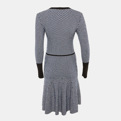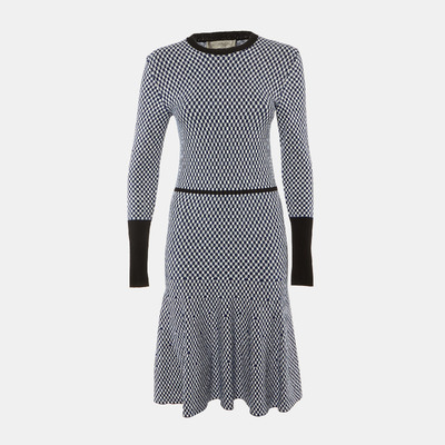 This Sportmax midi dress features a bold blue check knit that flatters the figure while offering stretch and comfort. Its fitted bodice and flowing skirt create an elegant silhouette. A stylish choice for both office days and evenings out.