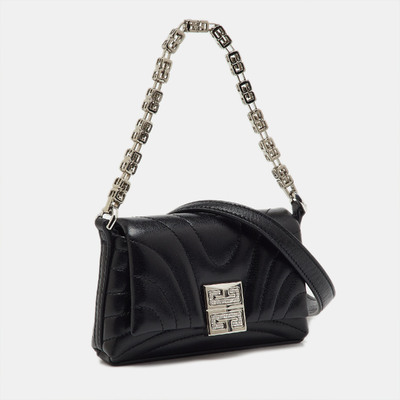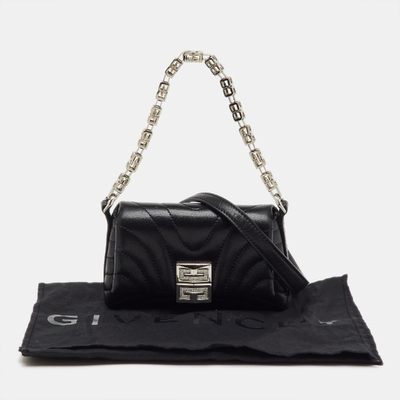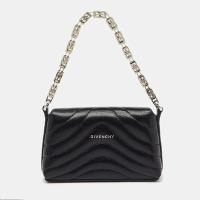 Givenchy’s 4G Liquid micro shoulder bag is a study in Parisian refinement. Quilted in black leather, the design is accentuated by the iconic 4G emblem, symbolizing heritage and modernity. Compact yet impactful, it carries essentials while offering versatile styling. Whether worn crossbody or on the shoulder, it’s a sleek companion that embodies the maison’s fusion of boldness and timeless elegance.