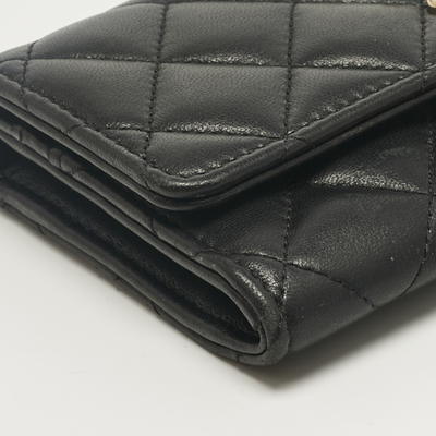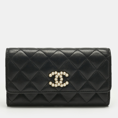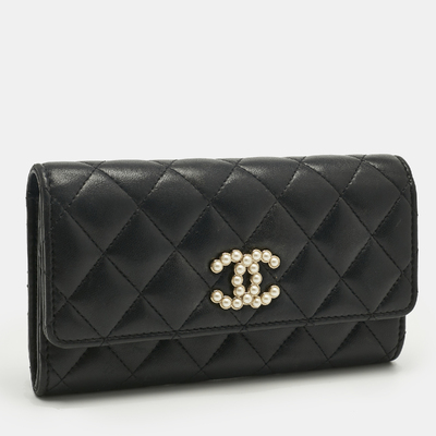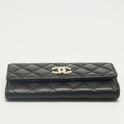 Chanel Black Quilted Leather CC Pearl Flap Wallet 1224832 (чёрный, lpn31028714)