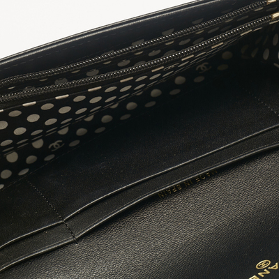 Classic quilting meets delicate detail in this Chanel wallet, crafted in black leather. The flap is crowned with a pearl accented CC logo, a subtle nod to the house’s timeless codes. Inside, organized slots and compartments blend beauty with everyday function.