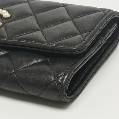Chanel Black Quilted Leather CC Pearl Flap Wallet 1224832 - 1