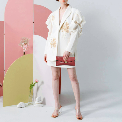 Shaped like a sealed letter, this clutch is crafted from smooth red leather that carries the vibrancy of Carolina Herrera’s house codes. The pointed flap keeps the silhouette sleek, while the compact interior is just right for evening essentials.