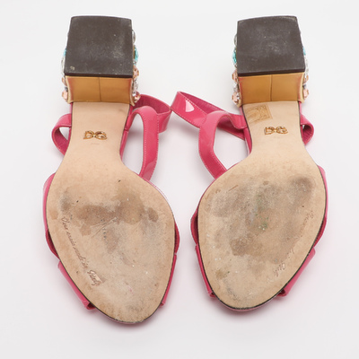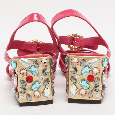 Prada Dolce & Gabbana Pink Patent Leather Crystal Embellished Heel Ankle Strap Sandals Size 38.5 1224896 - 1