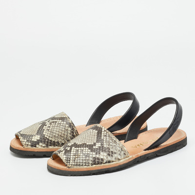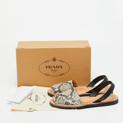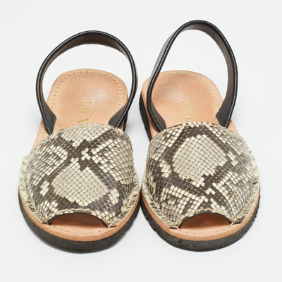 Gorgeous and contemporary, these Prada sandals will accentuate the beauty of your feet. Crafted from python skin and leather in a grey color, they are both comfortable and stylish. They feature peep toes and slingback straps. The leather lined insoles carry brand details.