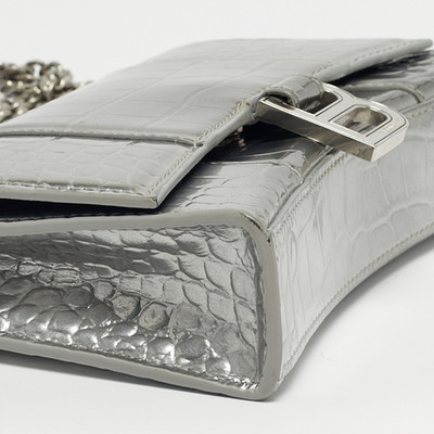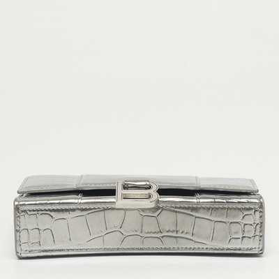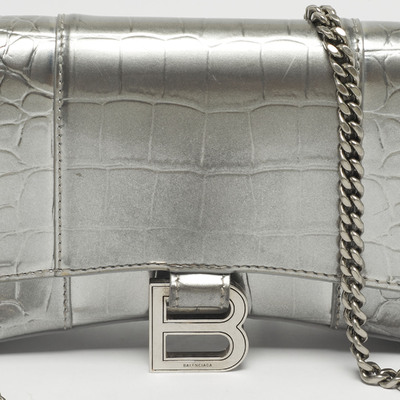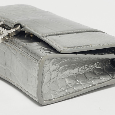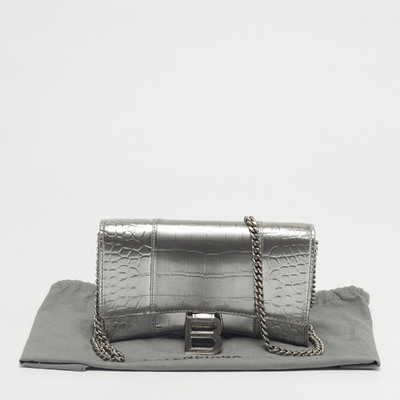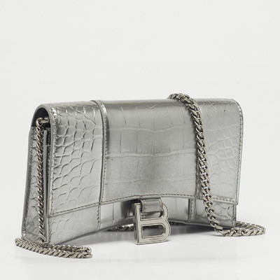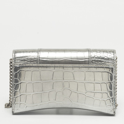 Balenciaga Silver Croc Embossed Patent Leather Hourglass Wallet on Chain 1224816 (lpn31028759)