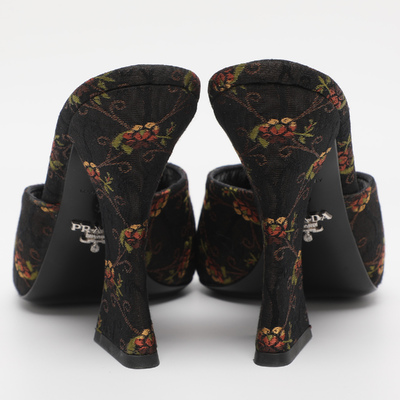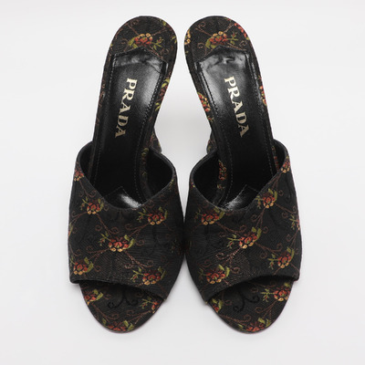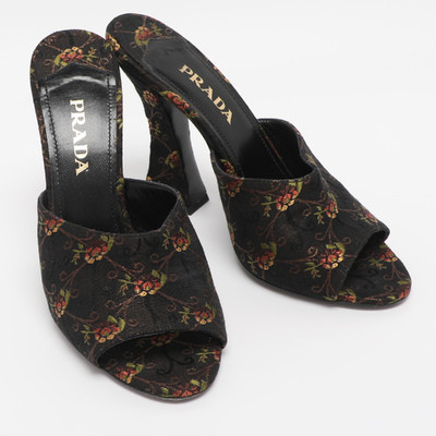 Prada Metallic Floral Embroidered Jacquard Slide Sandals Size 38 1224711 (lpn31028765)