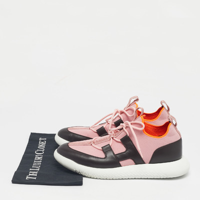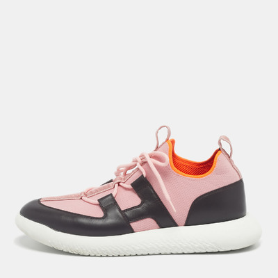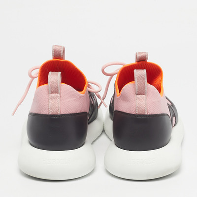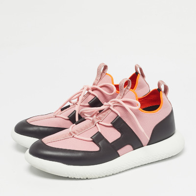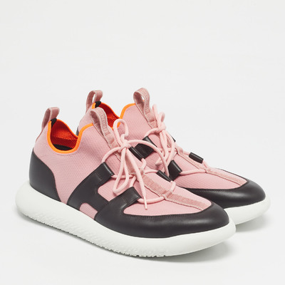 Hermès steps into contemporary design with the Duel sneakers, crafted from pink knit fabric and black leather for a sleek, lightweight fit. A low top cut and clean finish make them refined yet sporty.