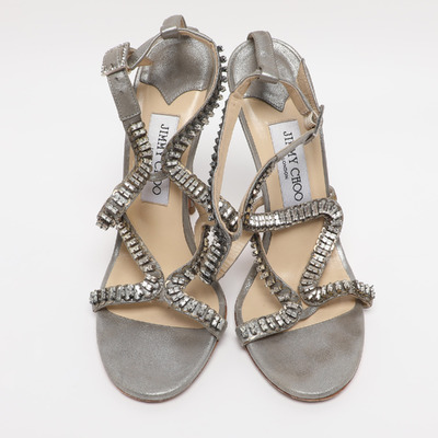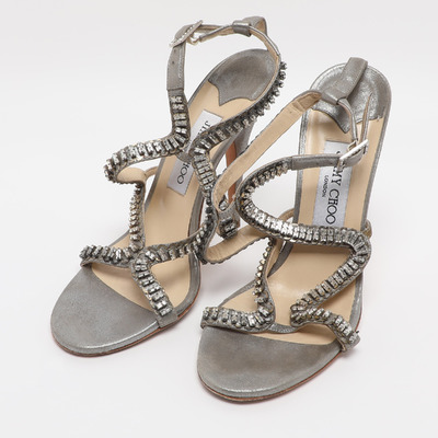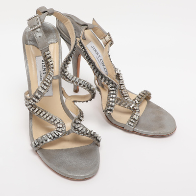 Jimmy Choo Metallic Grey Textured Suede Crystal Embellished Angel Sandals Size 38.5 1224746 (lpn31028816)
