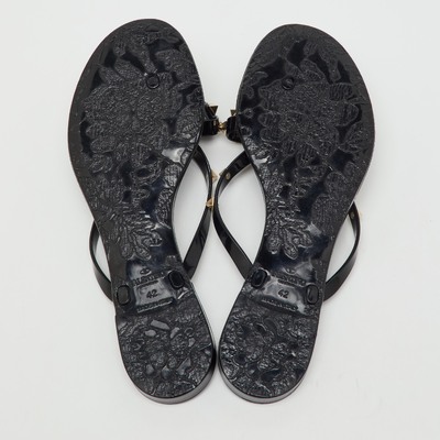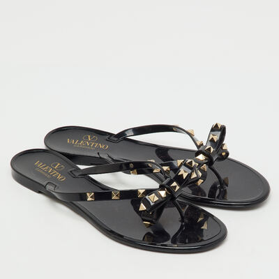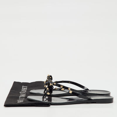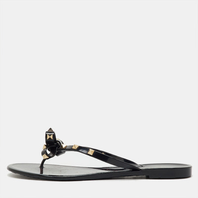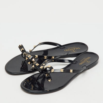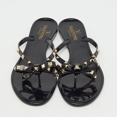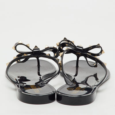 Playful yet iconic, these preloved Valentino jelly sandals feature the signature Rockstuds along a bow accented thong strap. Done in black, they’re perfect for poolside chic with a designer edge.