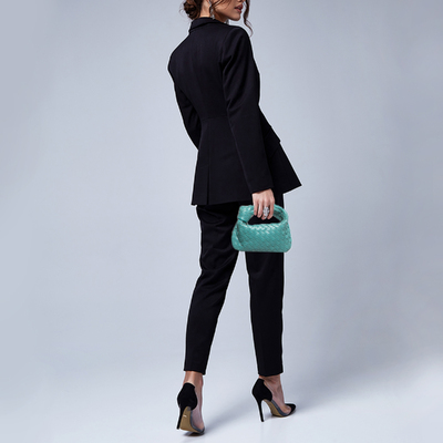 Bottega Veneta presents the Mini Jodie hobo in turquoise Intrecciato leather. Iconic and compact, it reflects maison weaving mastery. A polished piece, it embodies modern sophistication.