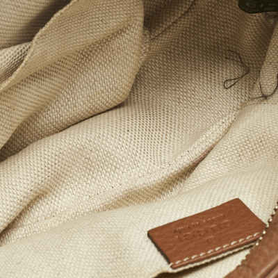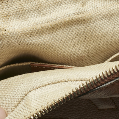 Guccis expertise in creating noteworthy designs is evident in this Soho bag. Made from python skin, it gets a luxe update with a brand motif on the front and displays a shoulder strap. The zipper closure at the top is equipped with a tassel detailed slider and it secures the canvas lined interior of the bag.
