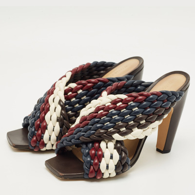 Bottega Veneta Multicolor Woven Leather Slide Sandals Size 39 1224328 (lpn31028939)