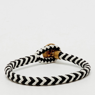 Versace reinterprets classic accessories with boldness in this braided bi color leather bracelet. Finished with a Medusa head toggle, it reflects the house’s iconic codes of power and opulence. Both modern and unmistakably Versace, it’s a piece that captures attention without compromising on versatility.