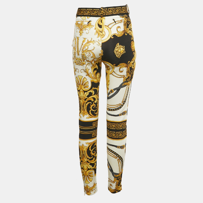 These Versace leggings stretch in jersey, covered in the house’s Rodeo Barocco print in a mix of hues. The close fit makes the ornate pattern stand out with impact.