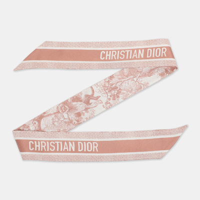 Dior’s iconic Toile de Jouy motif is reimagined in soft ivory and pink hues for this silk Mitzah scarf. Slim and versatile, it can be tied around the neck, wrist, or bag handle, offering endless styling options. The print reflects the maison’s archival artistry, making this a piece that carries both heritage and modern elegance.
