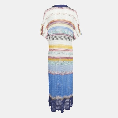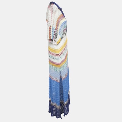 Missoni Mare Multicolor Patterned Knit Sheer Slit Detail Long Dress S 1221475 (lpn31029055)