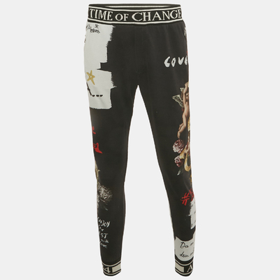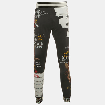 Dolce and Gabbana elevates casualwear with these cotton joggers, styled in black with bold print detailing. The cut is balanced with an elastic waist and cuffs for comfort driven ease.