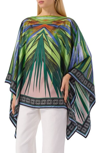 Шелковый топ Elie Saab 710009407 (зелёный, lpn31030853)