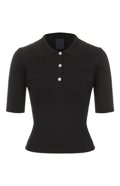 Приталенное поло сшили из микса вискозы и хлопка в рубчик. Укороченная модель с имитацией карманов на груди и брендированной пластиной сзади застегивается фирменными пуговицами.