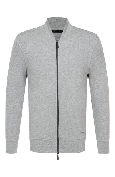 Толстовку с воротником-стойкой и двумя врезными карманами сшили из меланжевого вискозного трикотажа. Модель, застегивающуюся встречной молнией, украсили логотипом марки сбоку.