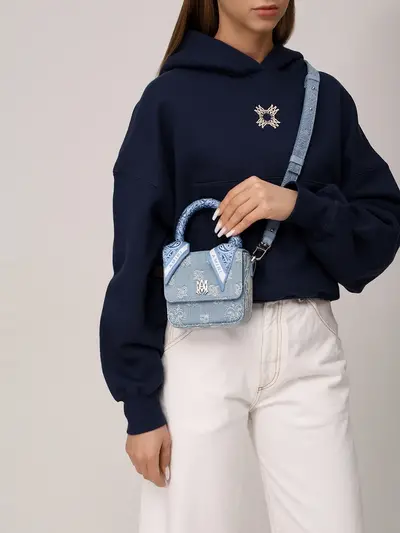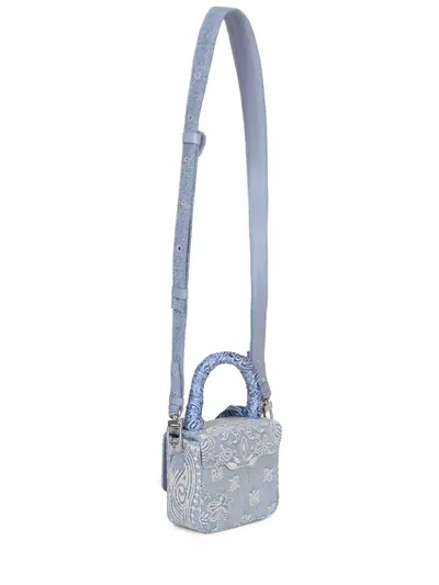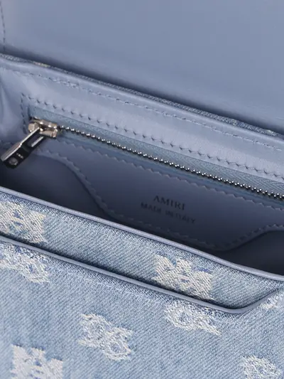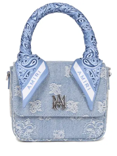 -Голубая сумка из денима с жаккардовым паттерном логотипа бренда от AMIRI.