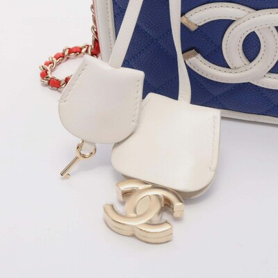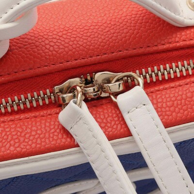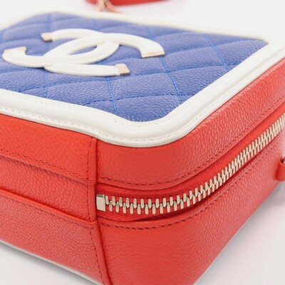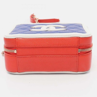 Chanel Cc Filigree Small Vanity Bag Shoulder Grained Calfskin Leather Blue Red White 1227976 (lpn31031659)