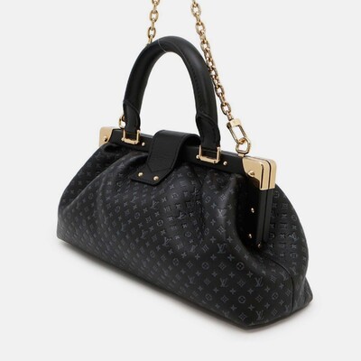 Crafted in supple black calf leather, this Nanogram clutch from Louis Vuitton features fine monogram detailing and a slim profile. Perfect for carrying small essentials or pairing with an evening outfit.