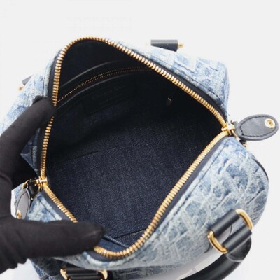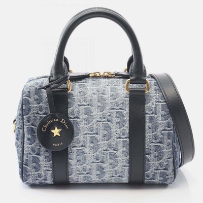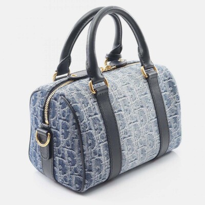 The Christian Dior Groove 20 Small Handbag combines durable denim and rich leather in a stylish navy blue design. Featuring the iconic Oblique jacquard pattern, this bag offers both practicality and fashion. Perfect for everyday use or adding a touch of luxury to your look, it has a spacious interior and a secure closure.