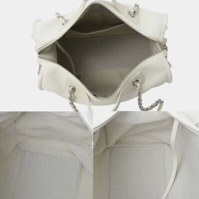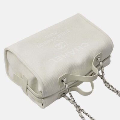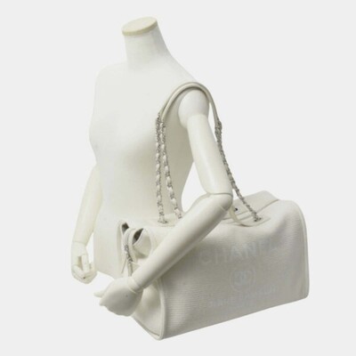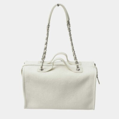 In white canvas with leather accents, Chanel’s Deauville Boston bag channels effortless sophistication. Its spacious design is balanced by chic simplicity, making it versatile for day to day elegance. A modern staple, it reflects both relaxed luxury and refined craftsmanship.