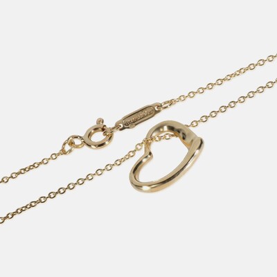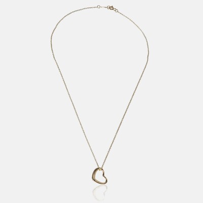 The Tiffany and Co. Elsa Peretti Open Heart Pendant Necklace in 18K yellow gold is a timeless piece that symbolizes love and affection. Designed by Elsa Peretti, the open heart pendant is delicately suspended from a fine gold chain, making it an ideal gift or personal keepsake. A beautiful addition to any jewelry collection.