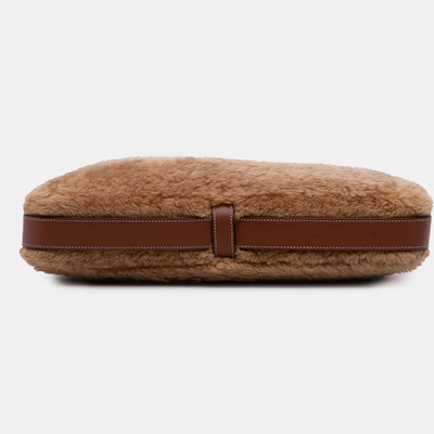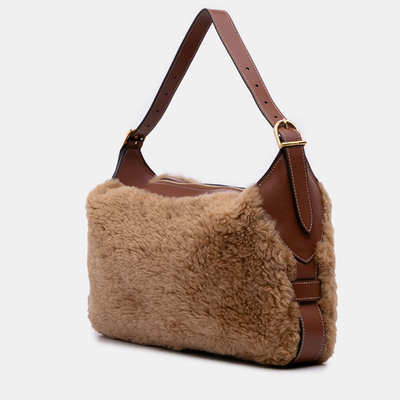 This Celine shoulder bag blends soft shearling with smooth leather for a cozy, textured look. The flap design and simple hardware keep the overall feel easy and relaxed, ideal for cooler seasons.
