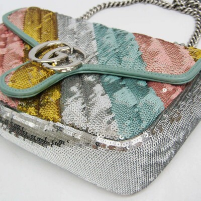 Gucci GG Marmont Leather Spangles Shoulder Bag Gold Silver Pink Gold Green 1227762 (lpn31031754)