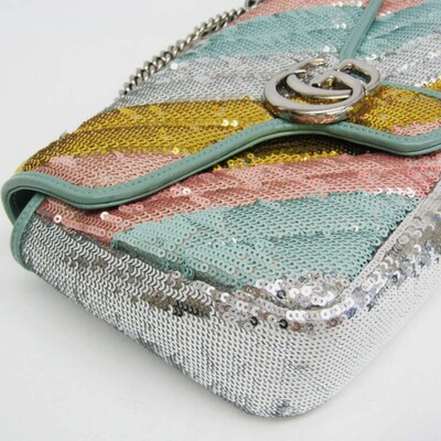 Gucci GG Marmont Leather Spangles Shoulder Bag Gold Silver Pink Gold Green 1227762 - 1