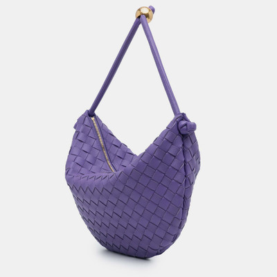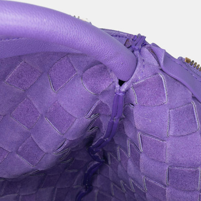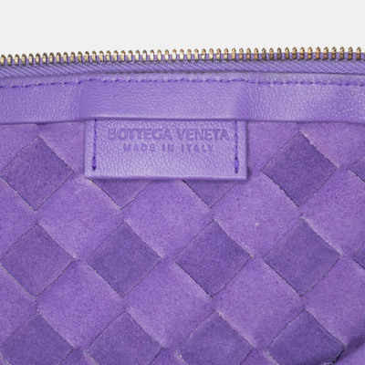 The Bottega Veneta Purple Small Nappa Intrecciato Turn Pouch is a vibrant expression of luxury craftsmanship. Its supple nappa leather and signature woven design create a chic, compact accessory perfect for effortless sophistication.