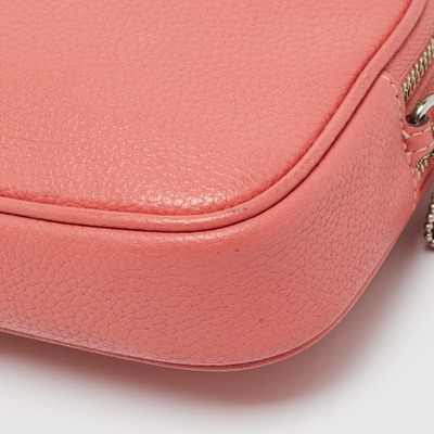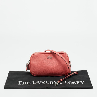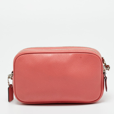A pop of coral brings playful charm to this Coach Sadie crossbody, crafted in pebbled leather with a soft, tactile finish. The double zip compartments keep essentials neatly separated, while the slim silhouette and adjustable strap make it an easy partner for travel days, brunches, or casual evenings out.