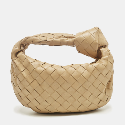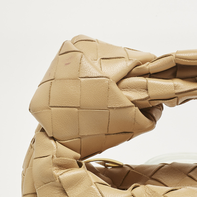 Bottega Veneta Cream Intrecciato Leather Mini BV Jodie Hobo 1224728 (бежевый, lpn31031779)