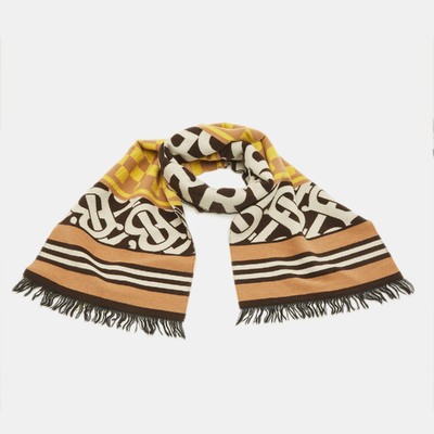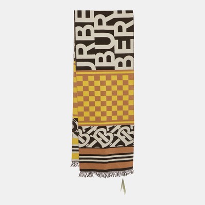 Burberry Yellow/Brown Wool Text Checkerboard Football Scarf 1223282 - 1
