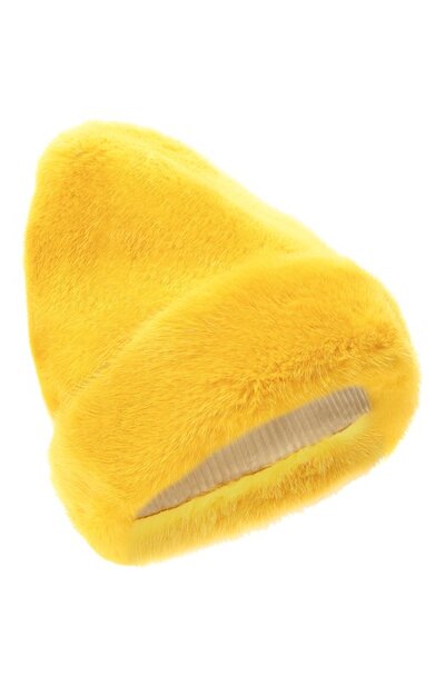 Желтая шапка, напоминающая бини с отворотом, гарантированно не останется без внимания. Комфорт в мороз обеспечит мягкий шелковистый мех норки. Густую пушнину тщательно отобрали и выделали вручную, чтобы сделать легкой и пластичной, сохранив прочность и способность удерживать тепло. Аксессуар дополнили фирменной подкладкой, которая поддерживает баланс температур и не портит прическу.