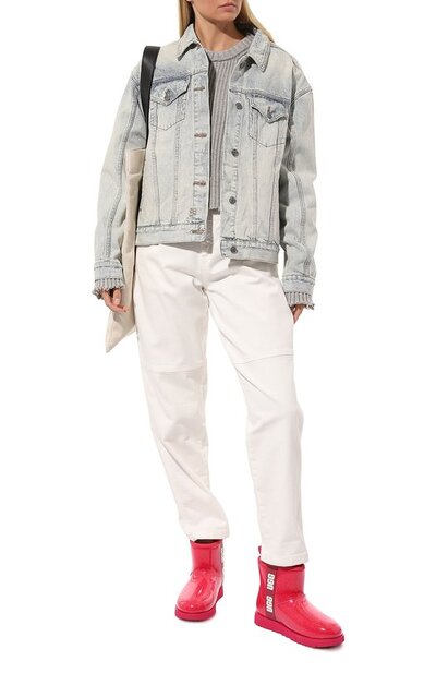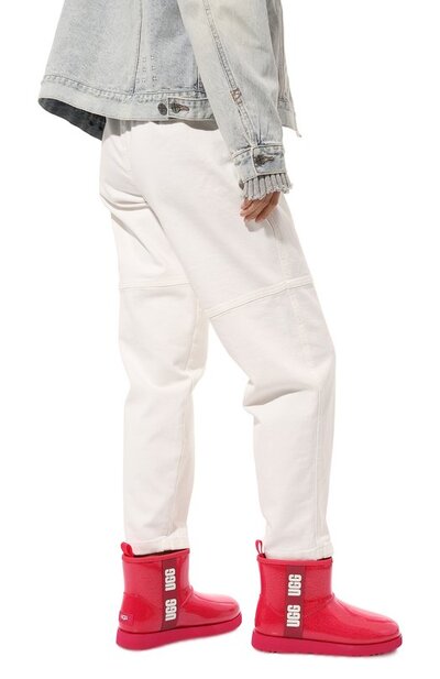 Ярко-розовые полусапоги Classic Clear Mini – идеальный вариант для капризного межсезонья и холодной погоды (в этой обуви будет комфортно при температуре до -20 градусов). За универсальность модели отвечает материал: ее выполнили из фирменной искусственной овчины UGGpure, отлично сохраняющей тепло, которую заключили в прозрачную оболочку из водонепроницаемого полиуретана. Легкая протекторная подошва поможет меньше скользить на мокрой и обледенелой дороге.